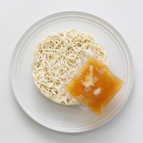 茹でる場合、冷凍麺を沸騰したお湯へ1分程度入れほぐれたらよく湯切りしてください。