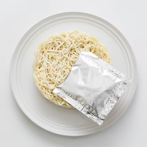 茹でる場合、冷凍麺を沸騰したお湯へ1分程度入れほぐれたらよく湯切りしてください。